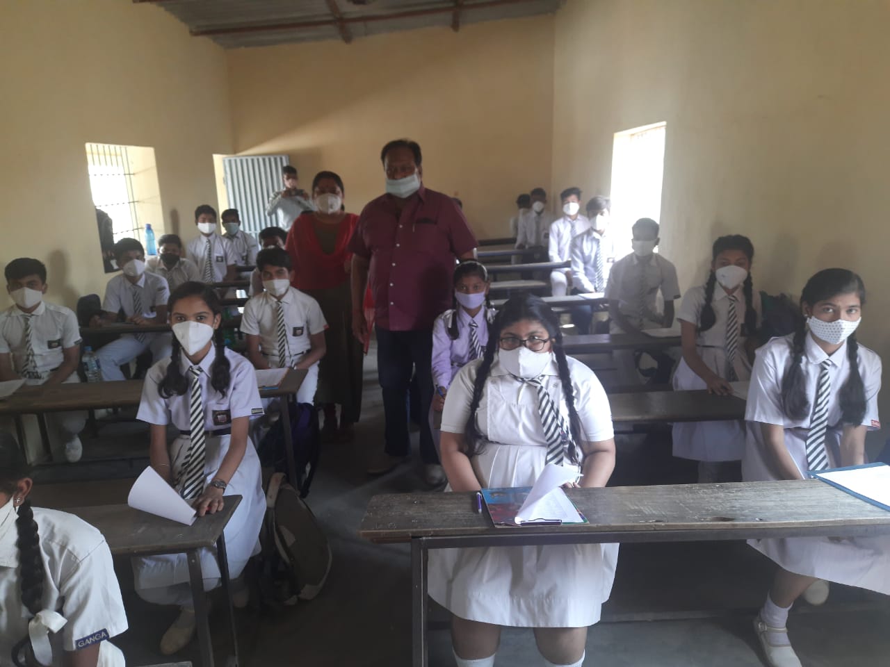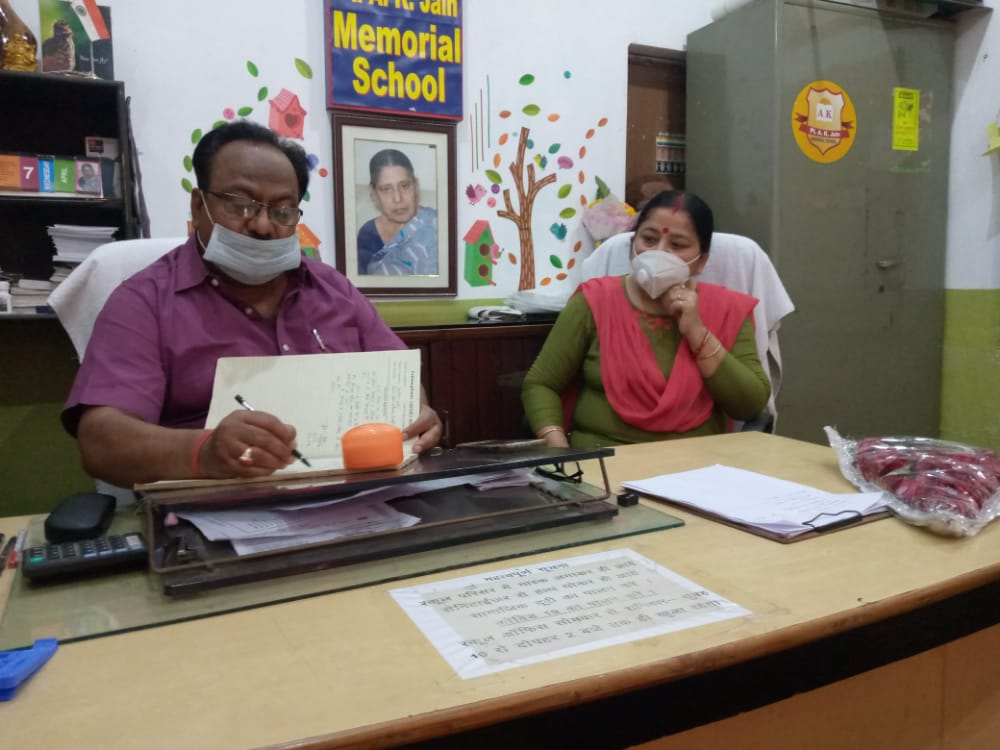 गिरिडीह जिला शिक्षा अधीक्षक श्री अरविंद कुमार जी जैन मेमोरियल स्कूल में कोविड-19 के दौरान क्लास 8 में हो रही पढ़ाई का औचक निरीक्षण करते हुए